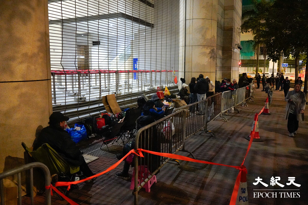 《壹傳媒》創辦人黎智英被裁定「串謀勾結外國勢力」及「串謀發布煽動刊物」共3項罪名成立,與另外8名被告明日(12日)求情。正庭連同7個延伸庭共派發491張公眾旁聽籌,由上周五(9日)中午開始,在西九龍法院外已有人排隊等候,今日約有60人排隊。