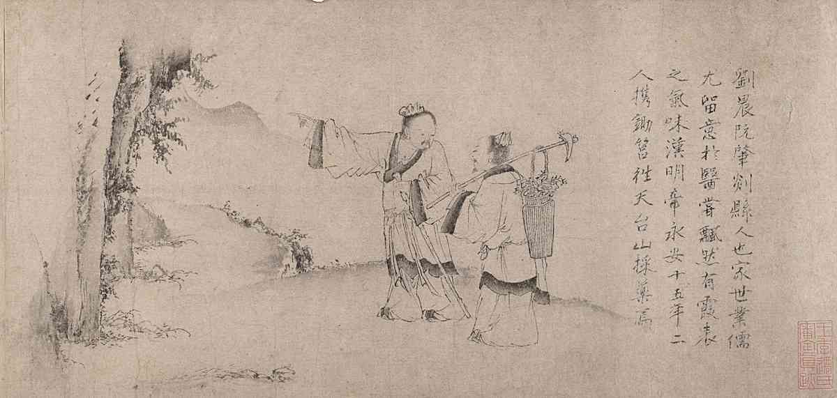 漢人劉晨到天台山採集藥材,宋人周敦頤喜愛觀賞蓮花。