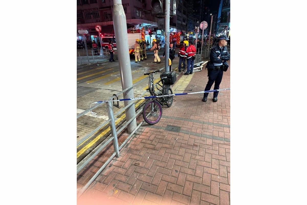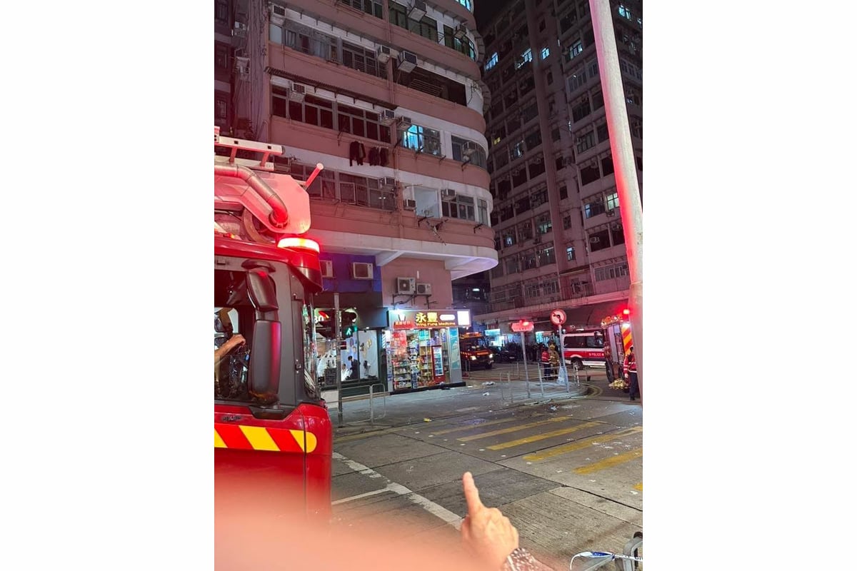 根據網上圖片,可見警方封鎖現場一帶,地上有一個損壞的窗框,相信是從上述唐樓一個低層單位墜下。警方和消防正調查事件,消息稱初步懷疑意外由石油氣樽引起。@
