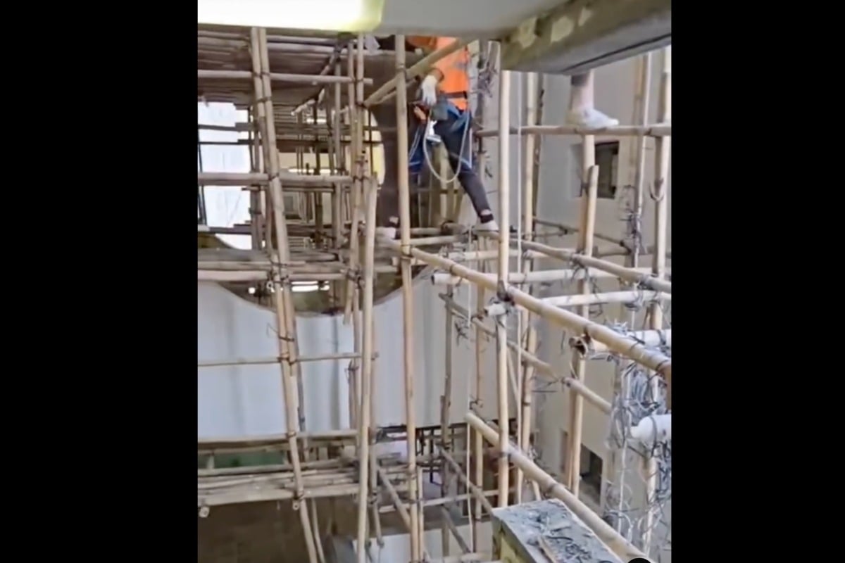 正進行大維修的火炭穗禾苑正在拆棚,網上昨(14日)流傳影片,見到一名拆棚工人在接過竹枝後,將竹枝掉落樓,上傳影片者稱有居民表示「行出去掉垃圾差啲比(被)竹打中,但工人唔理照掉竹」。業主立案法團通知承建商富林工程,獲回覆指已「已經嚴重警告」涉事工人。不少網民認為,稱有關行為涉高空擲物,應該報警。