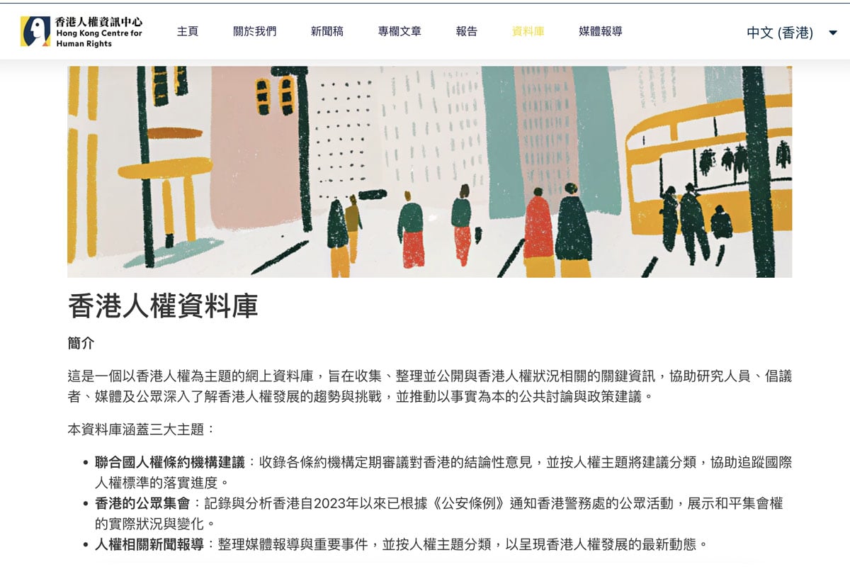 香港人權資訊中心昨日(5日)推出「香港人權資料庫」,系統性整理與香港人權狀況相關的公開資料,涵蓋三大主題:聯合國人權條約機構對香港的建議、已根據《公安條例》作出通知的公眾集會,以及與人權議題相關的新聞報道。資料庫提供中英對照內容,供本地及海外使用者查閱、研究及分析。