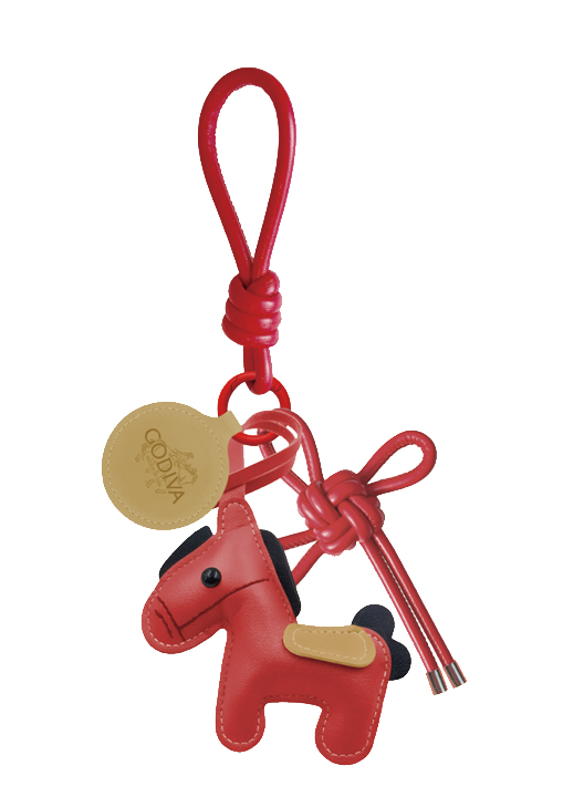 新年限定禮盒附上馬年皮革吊飾,以駿馬馳騁為設計主題,結合柔軟皮革質感。由即日起,凡選購任何新年系列產品(禮籃除外)單一消費折實滿HK$388,即可獲贈GODIVA馬年皮革吊飾乙個。