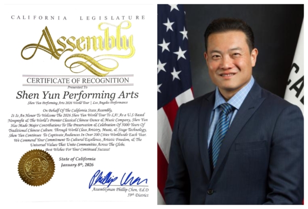 加州第59選區州眾議員陳立德(Phillip Chen)在賀信中寫道:「謹代表加州眾議院,誠摯歡迎2026神韻世界巡迴演出蒞臨洛杉磯。」