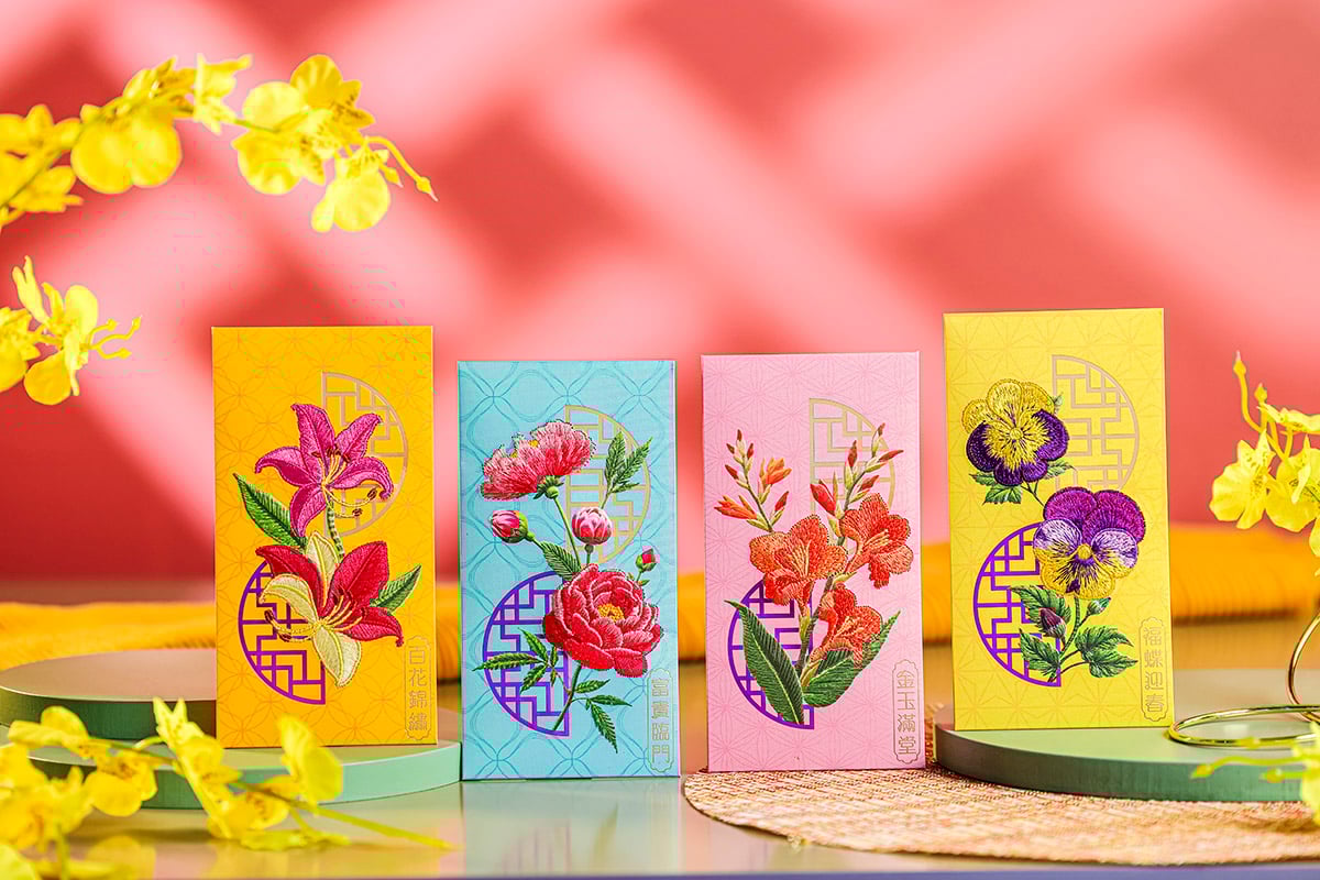 為迎接丙午馬年,新鴻基地產旗下商場:上水廣場、將軍澳中心、錦薈坊特別聯手推出限量版「花漾錦繡」刺繡利是封。設計靈感取材自經典新春花卉,結合傳統刺繡工藝,匠心打造4款寓意吉祥的利是封。