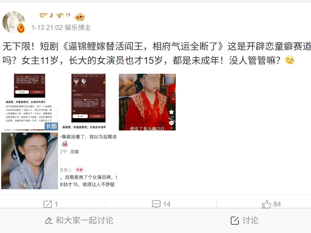 1月14日,「7歲嫁人15歲生子短劇引眾怒」話題衝上微博熱搜。目前,該劇在大陸平台上已無法查詢,顯示「已下架」。