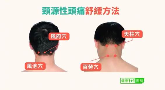 Jonathan Liu還建議,在日常生活中可以多按摩後頸部穴位,有助改善腦部供血,改善和預防頭痛頭暈: