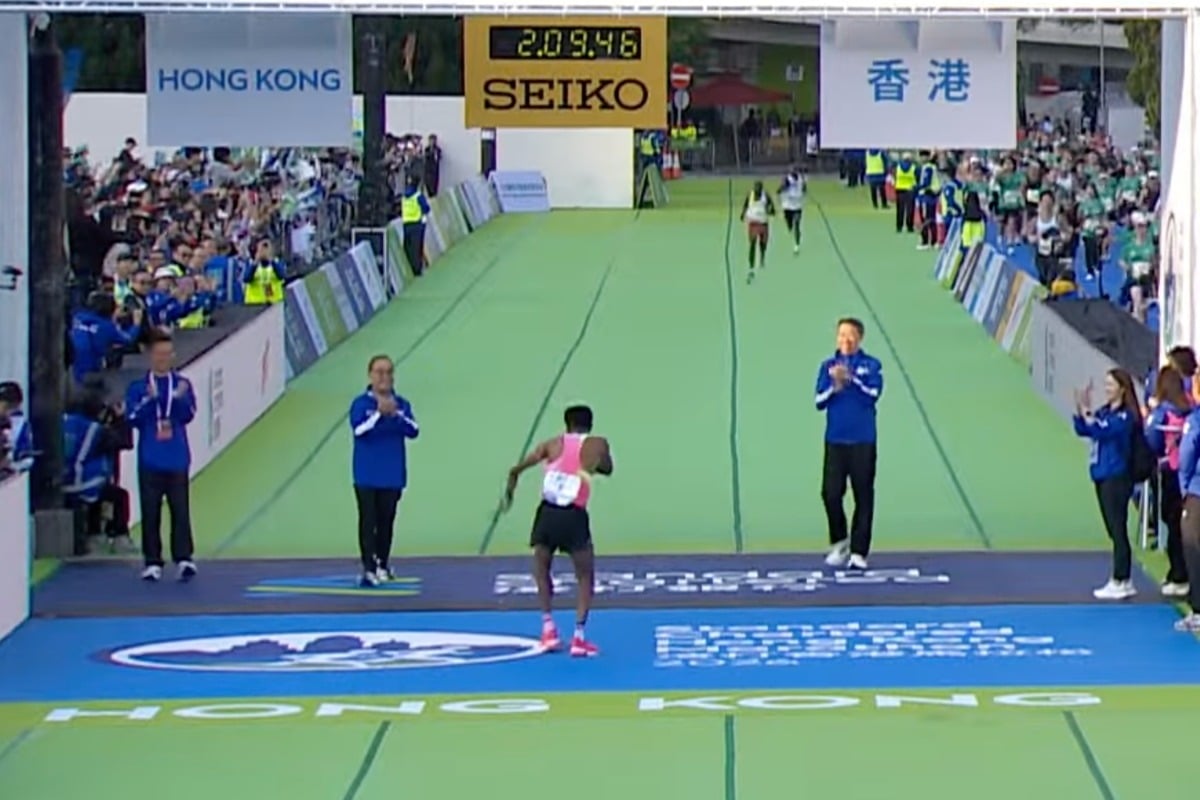 事發在早上約8時10分。現場影片見到,洪丕正、蒙德揚預先拉起衝線帶。當比拉古以2小時9分39秒衝線後,即在賽道上跳舞慶祝。洪丕正、蒙德揚即趨上,靠近賽道中央,站在比拉古的後方拍手,田總行政總監伍于豪亦從旁邊走入賽道近中央位置。3人看著一直前行的比拉古,視線並無留意後方即將衝線的第二及第三名跑手。