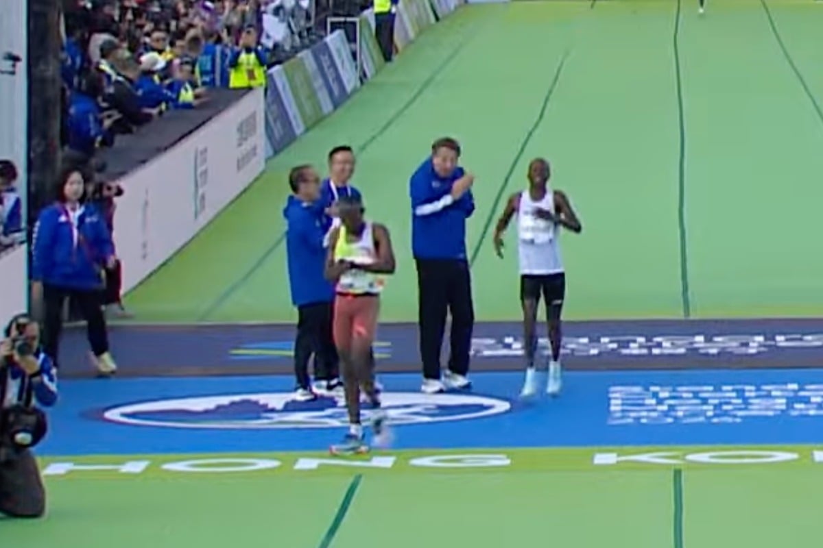 渣打香港馬拉松今(18 日)舉行,全馬挑戰組終點衝線時,至少3名大會人員,包括渣打集團國際業務總裁、香港金融發展局主席洪丕正、田徑總會會長蒙德揚,步入賽道中央位置,拍手祝賀冠軍跑手、埃塞俄比亞跑手比拉古(Bizuneh Melaku Belachew),差點與隨後趨近終點的第二及第三名跑手相撞。