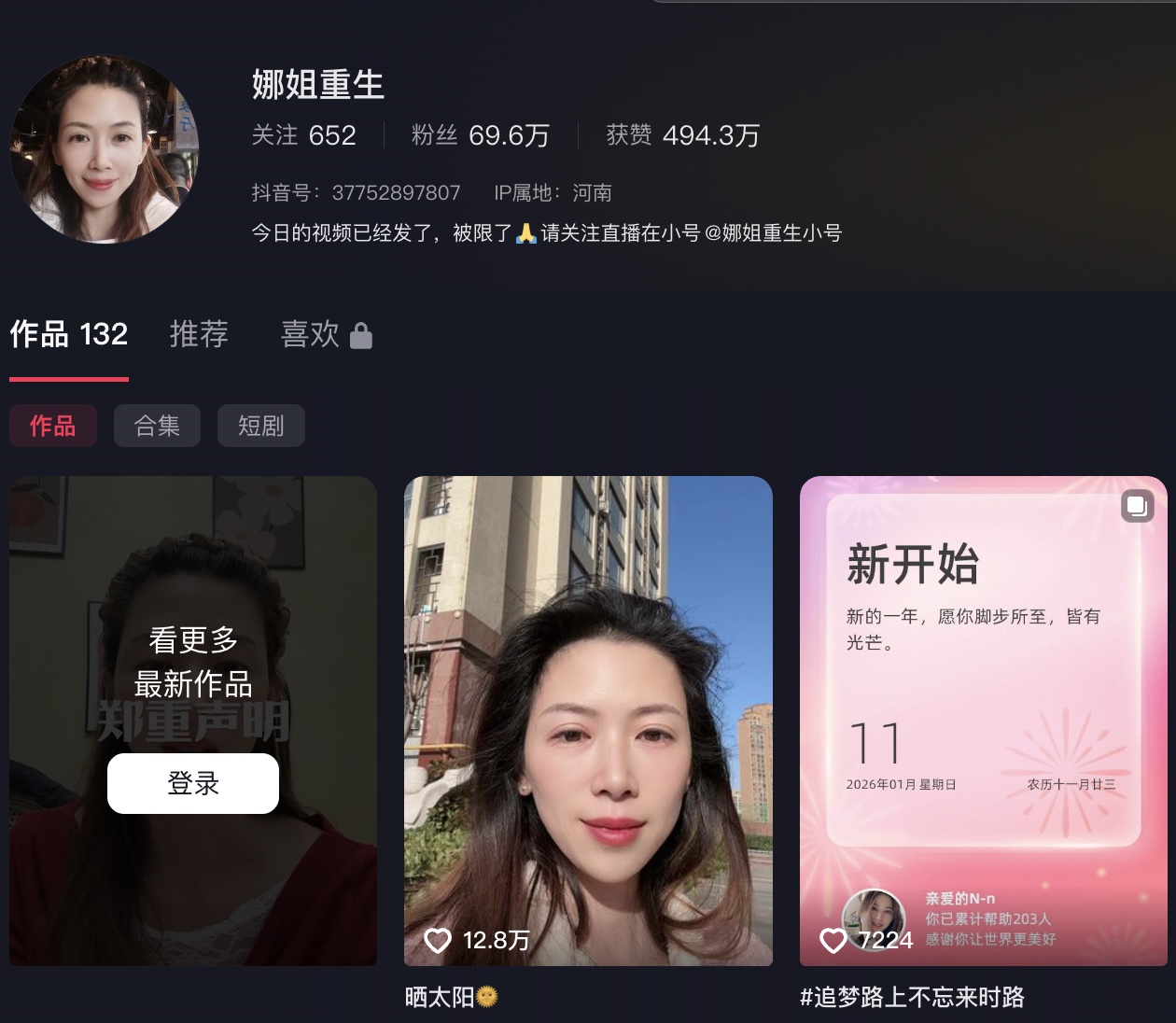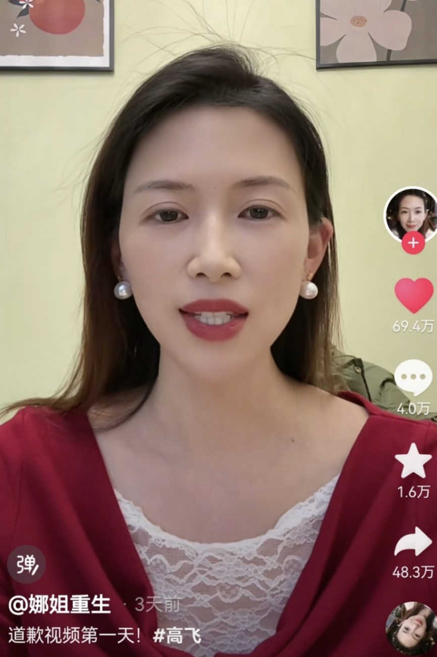 從1月12日至16日,河南三門峽女子牛娜,連續五天,在社交平台以「娜姐重生」帳號,發布向出軌丈夫「道歉」的影片。