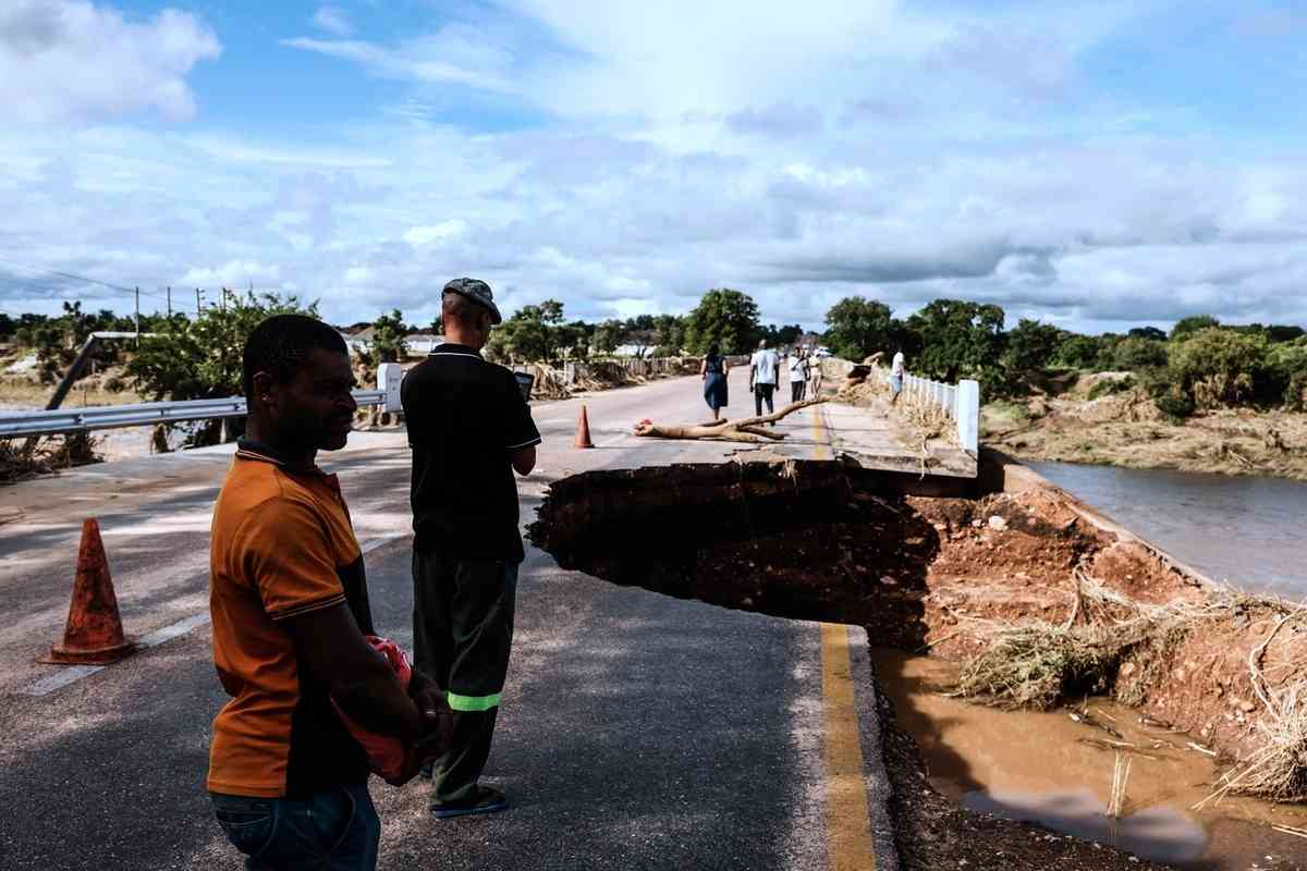 2026年1月16日,南非林波波省(Limpopo)大部份地區遭遇強降雨襲擊,當地居民查看法拉博瓦(Phalaborwa)郊外加塞拉蒂河(Ga-Selati River)上受損的橋樑。(Paul Botes/AFP via Getty Images)