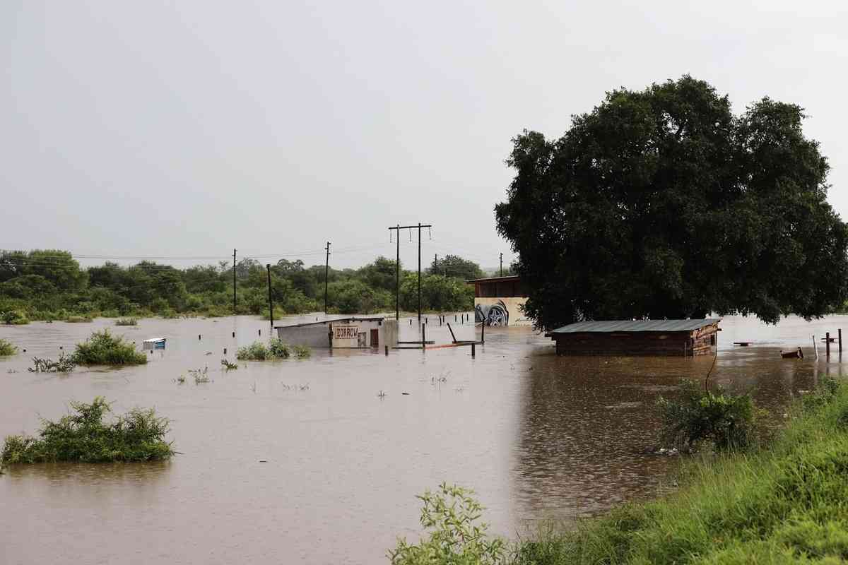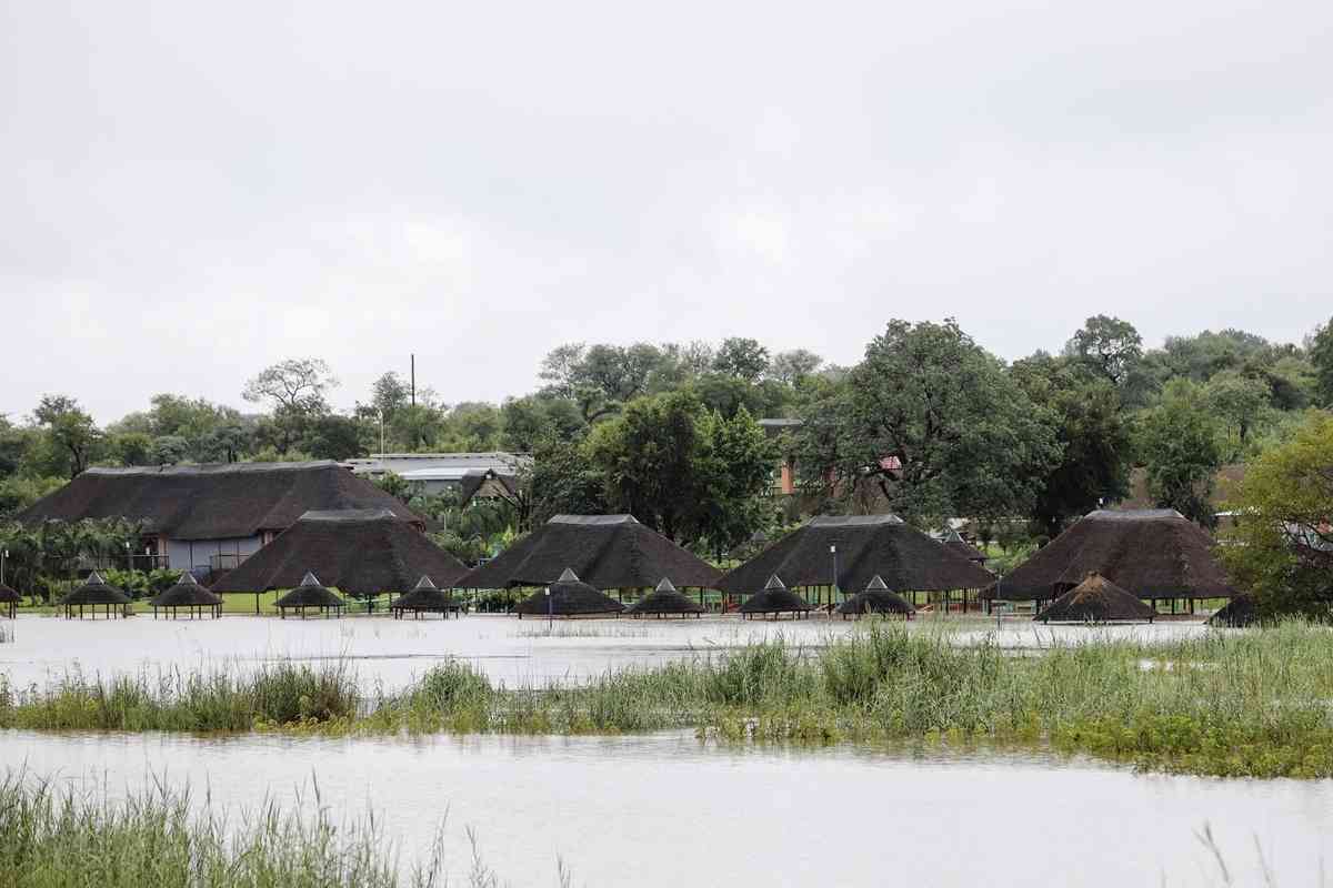 2026年1月16日,南非林波波省(Limpopo)吉亞尼市(Giyani)的阿克西瓦萊尼度假村(Axivaleni Resort)被洪水圍困。(Orlando Chauke/AFP via Getty Images)