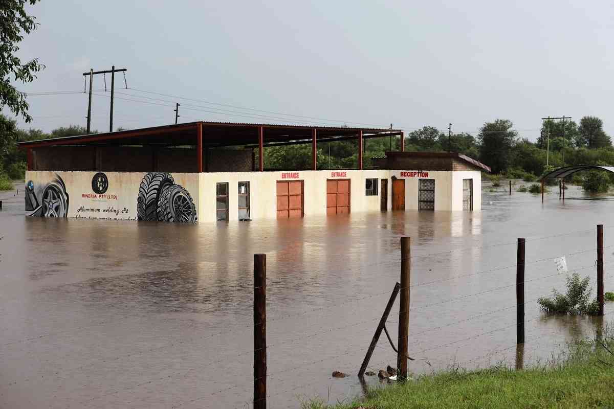 2026年1月16日,南非林波波省(Limpopo)吉亞尼市(Giyani)的一處商業設施被洪水圍困。(Orlando Chauke/AFP via Getty Images)
