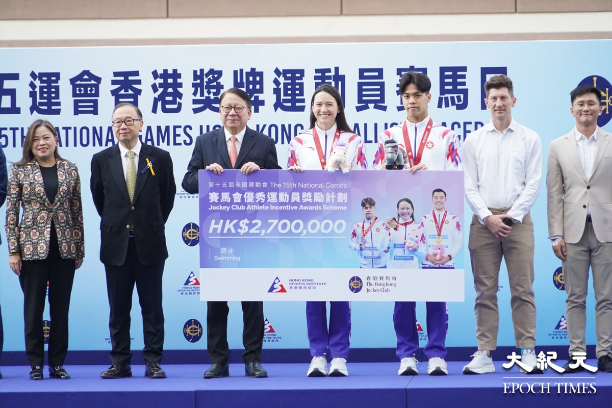 港隊在去年底舉行的第十五屆全國運動會中,勇奪9金、2銀、8銅,創下本港於全運會的歷來最佳成績。賽馬會今(18日)向獎牌健兒頒贈獎金1,147.5萬港元。