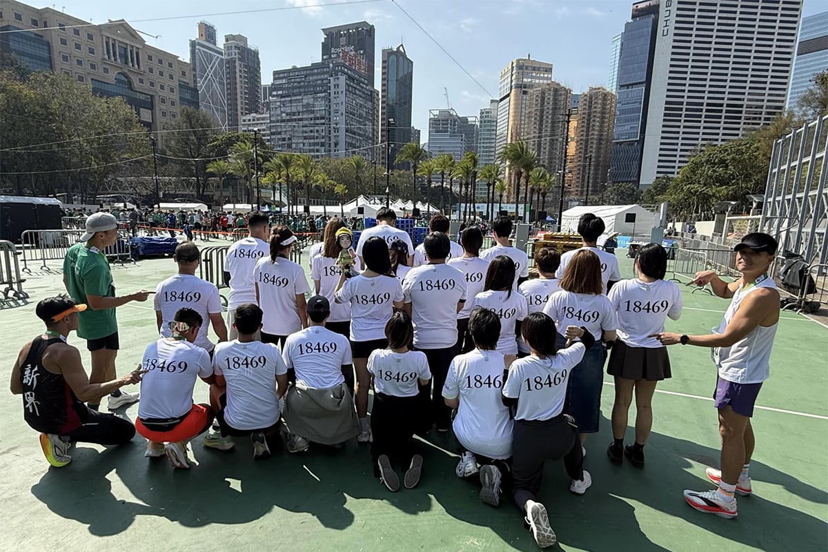 何偉豪的20多名親友和同袍則組成「何胖跑步會」,帶著何偉豪的照片和跑手號碼布等踏上賽道,「陪他」完成賽事。