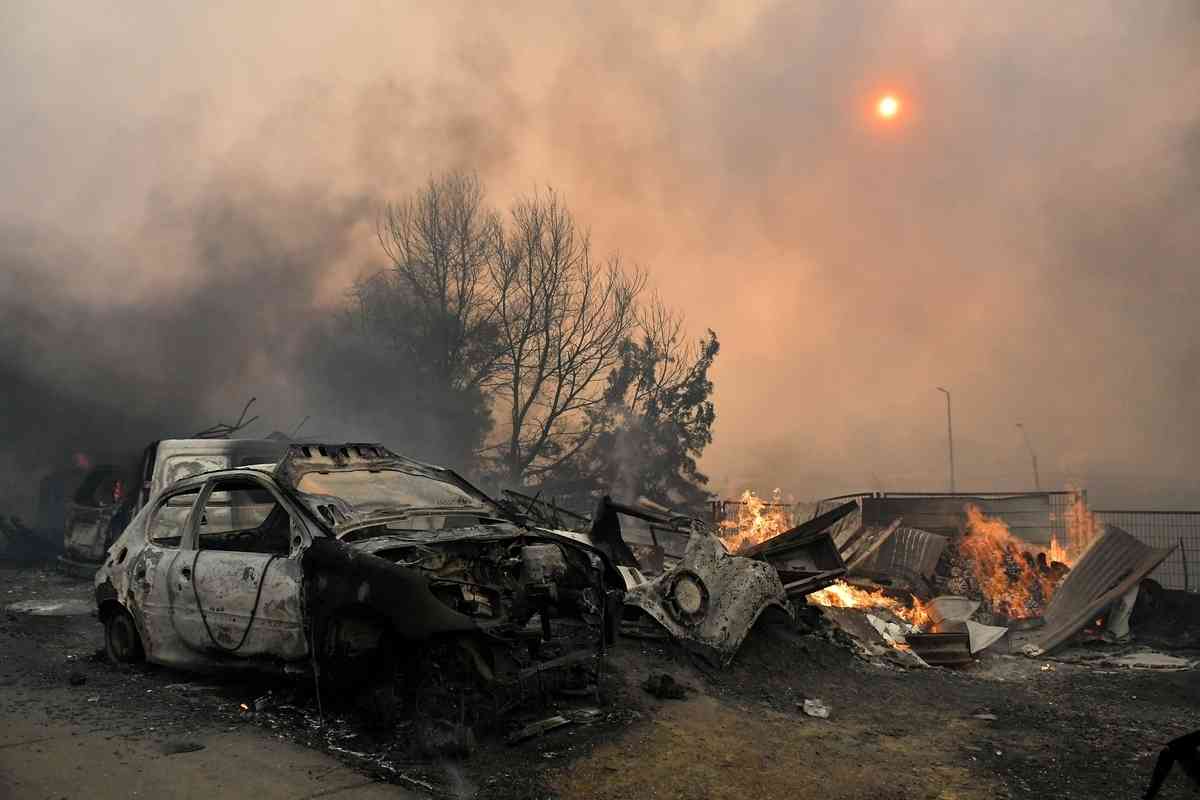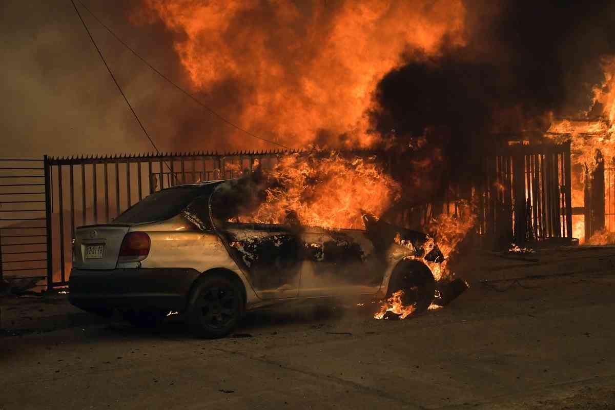 2026年1月18日,智利比奧比奧大區首府康塞普西翁市(Concepcion)發生野火,當地一棟房屋和一輛汽車被大火吞噬。(GUILLERMO SALGADO/AFP via Getty Images)