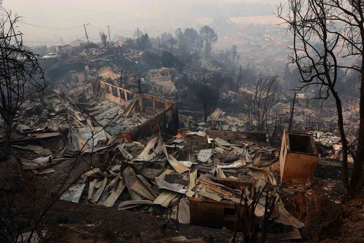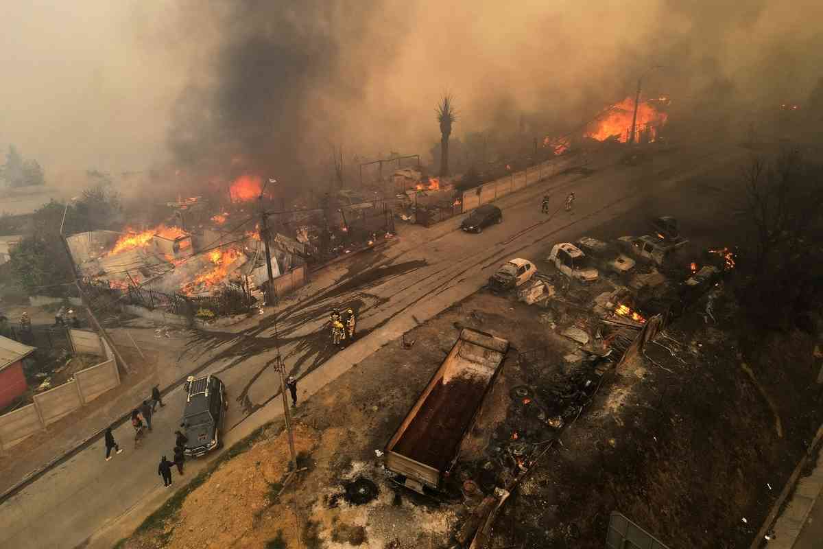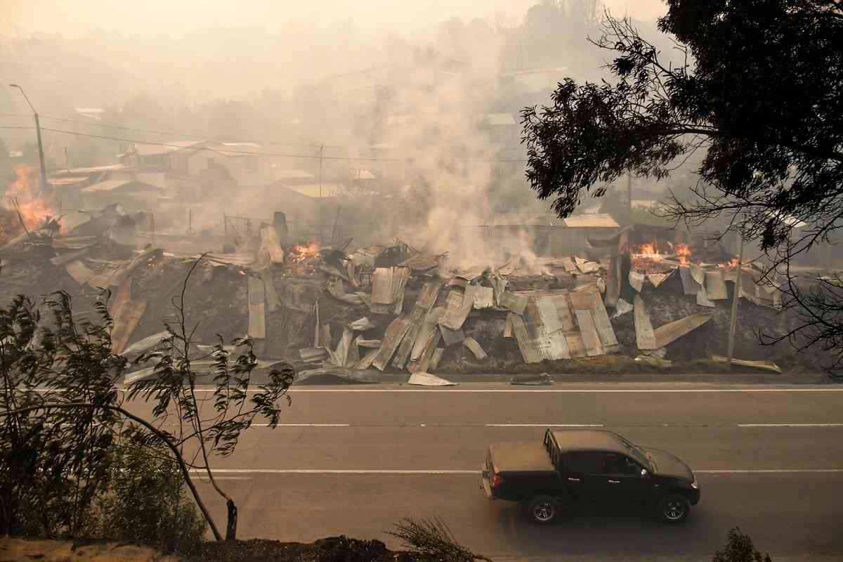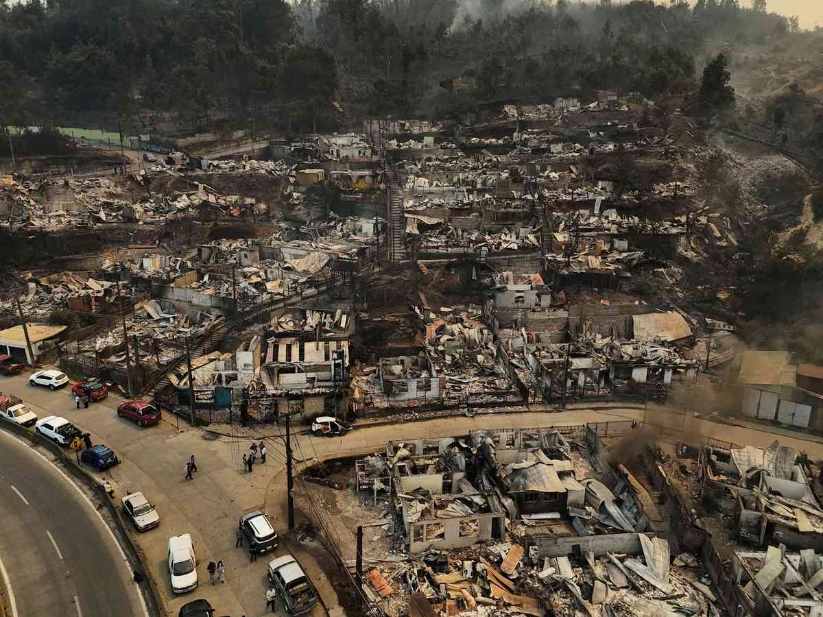 智利國家災害管理局(Senapred)表示,目前超過5萬人被緊急疏散,至少300棟房屋被毀。當局稱,強風和高溫等不利條件助長了山火蔓延,增加了消防員控制火勢的難度。