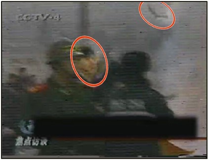 那麼,這些警察、武警、攝影師應該都是事先知情的。他們不僅知道那天下午要發生自焚這件事,知道自己在發生這件事時被命令做甚麼、怎麼做,還知道有一個穿軍裝外套的「壯碩的軍警」來殺死劉春玲,他們還被命令配合兇手用滅火器煙幕掩護他殺人。軍裝外套是主角,他們都是配角。