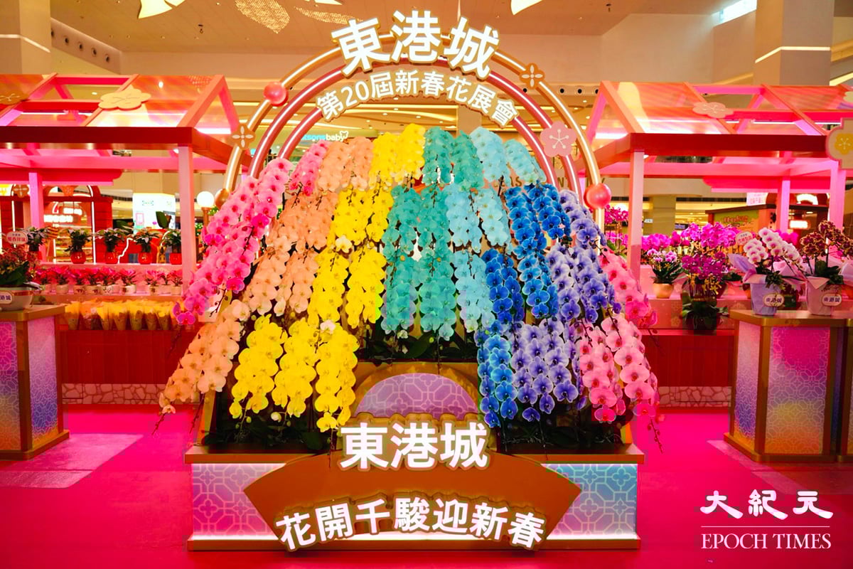 東港城表示,今年適逢活動踏入第20屆,主辦方聯同本地花農及批發業界,推出20款首次在港亮相的全新品種蘭花,包括10款本地培植蝴蝶蘭及10款日本蘭花,象徵新一年新氣象與周年盛景。更特別選取日本蘭花破天荒創作全港首個八色蘭花彩虹裝置「花開千駿迎新春」。
