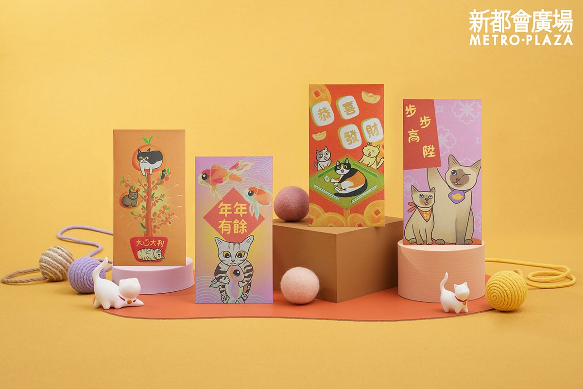 葵芳新都會廣場今年新春特意聯乘本地插畫師Giselle,以「貓肥屋潤」為主題,設計了一套4款限量版賀年利是封。