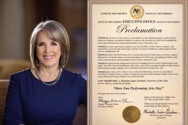 在神韻藝術團即將蒞臨美國新墨西哥州首府阿爾伯克基(Albuquerque)演出之際,該州州長蜜雪兒‧盧漢‧葛里申(Michelle Lujan Grisham)為神韻發來褒獎,宣布2026年1月27日為「神韻藝術團日」,並於新墨西哥州全境共同慶祝。