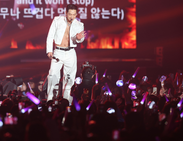 Rain並且表示,雖然在舞台上,無法聽見彼此的聲音,但感受到了粉絲溫暖的眼神,以及那份真心為他加油、真誠滿滿的目光;最後他以「愛你們,謝謝」表達感謝。