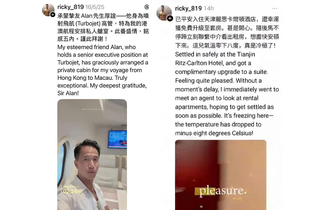鄭震生去年在社交平台Threads發出自己在艙室的相片,並表示,自己獲噴射飛航高級管理人員Alan安排港澳航程坐私人艙室,形容是「承蒙摯友厚誼」、「此番盛情,銘感五內。謹此拜謝!」