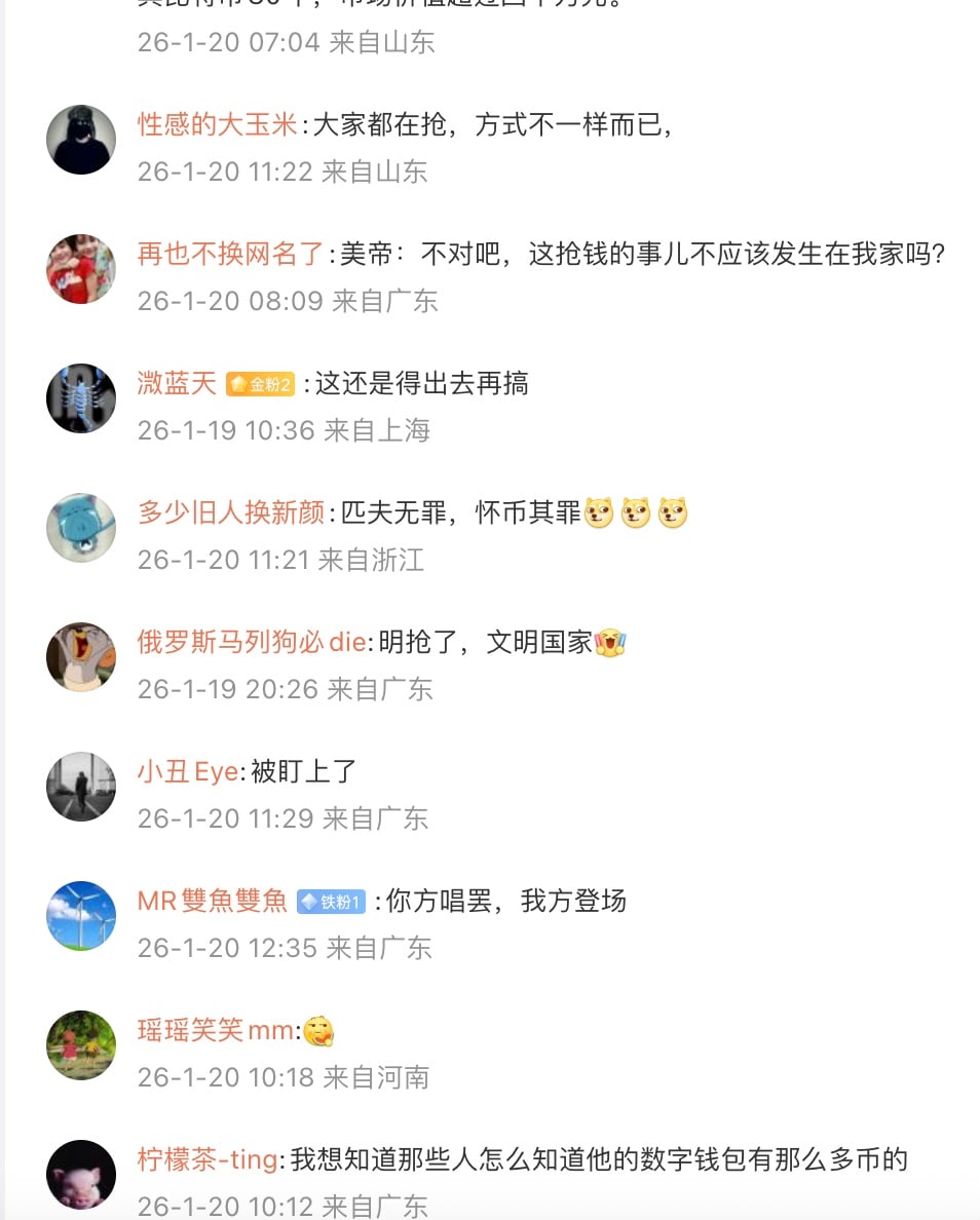 網民質疑,「欲加之罪何患無辭」「明搶了」「我想知道那些人怎麼知道他的電子錢包有那麼多幣的」「先抓人,再找理由定罪」「這明顯是衝著錢來的」「肯定是有人盯上他的比特幣了」「遠洋捕撈」「有點東西搶就搶,說的義正嚴辭」。
