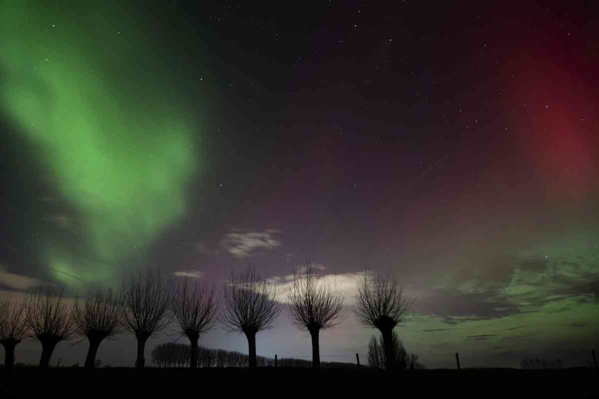 2026年1月19日,在比利時馬爾德海姆市米德爾堡村(Middelburg)的上空出現的北極光。(Maarten Straetemans/Belga Mag/Belga/AFP via Getty Images)