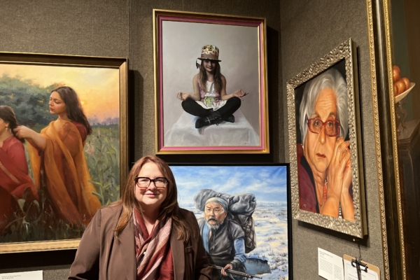 一位美國資深畫家Jamie Lindholm以一幅《向你致敬》(Namaste)進入了2025年第七屆新唐人「全世界人物寫實油畫大賽」的入圍作品展。她說,她一直想畫那種真實得讓人似乎觸手可及的寫實作品,並表現光明和美,「這就是我的使命,成為一縷陽光。」她說。
