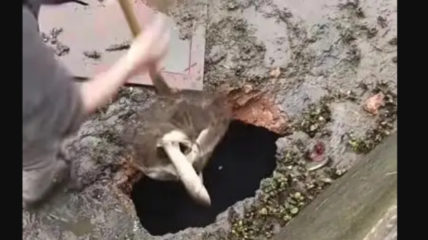 近日,湖南邵陽一養魚戶的魚塘底部驚現一個大洞,魚塘內的數百斤魚隨水「漏」走,塘主損失慘重。
