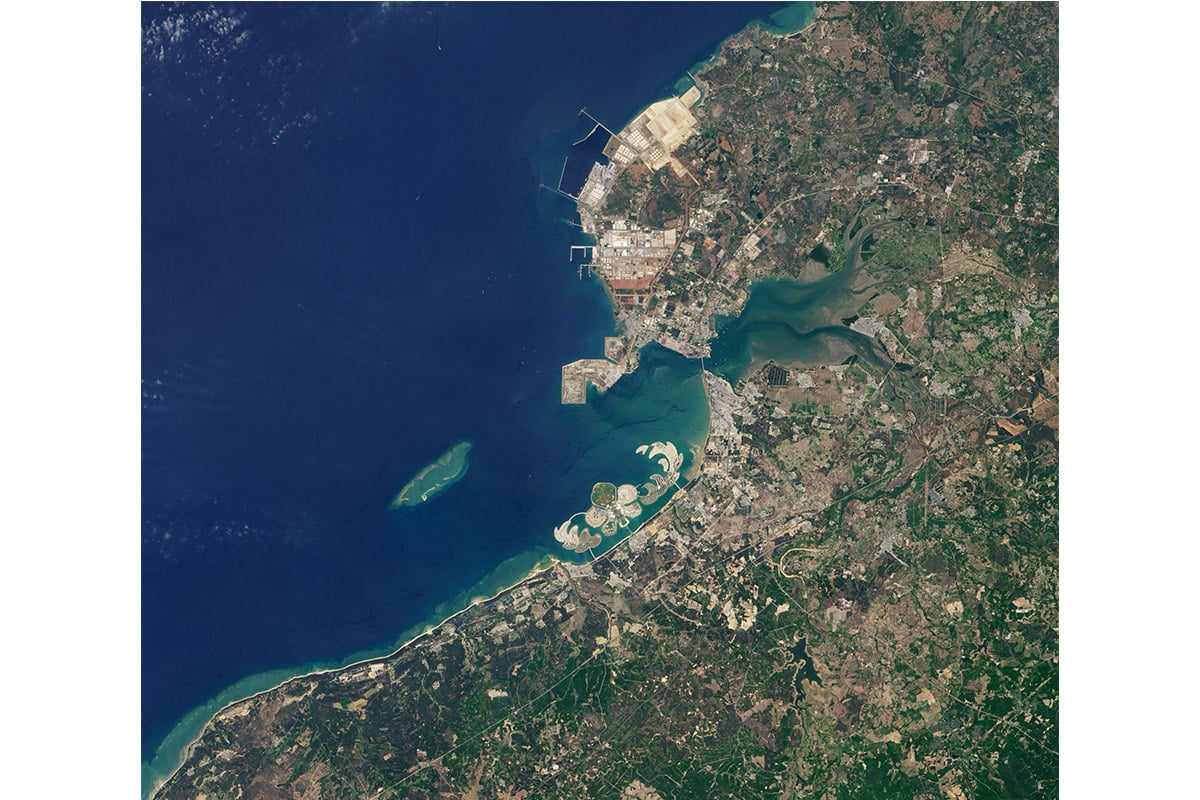海花島位於中國海南省儋州市海岸線外,由中國恒大集團投資開發,是一個總面積約381公頃(約7.8平方公里)的人工填海島嶼。該項目於2015年啟動建設,官方和開發商曾將其定位為「中國版杜拜」,項目設想包括主題樂園、酒店、博物館、會展中心等多種設施,以及大量高端住宅。