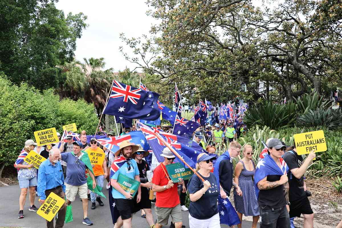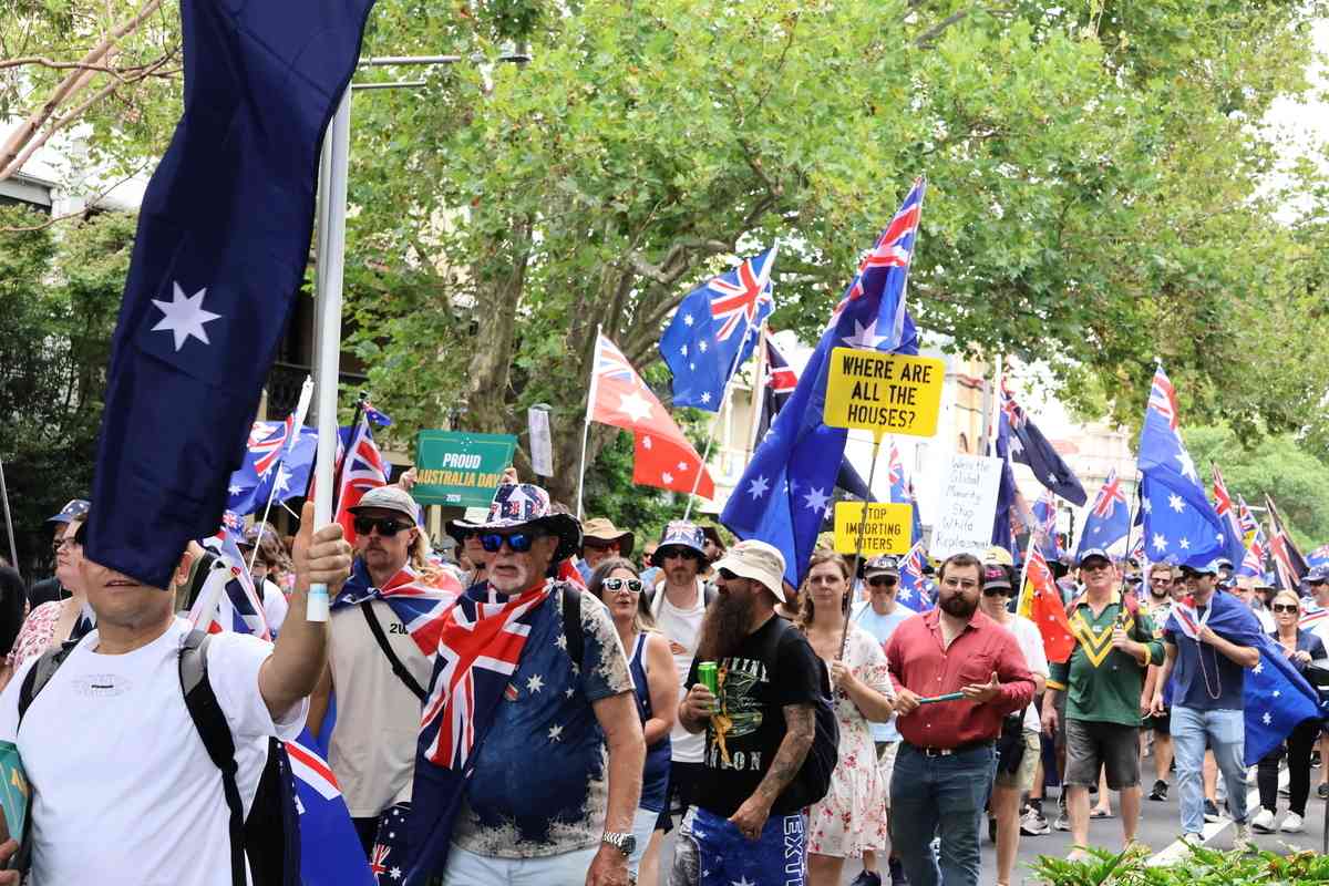 1月26日(周一)澳洲國慶日中午,「為澳洲而行」(March for Australia)大規模遊行集會在悉尼登場。逾2,000民眾走上街頭,針對移民政策及國家認同等議題表達訴求,呼籲政府重新審視國家未來發展走向。