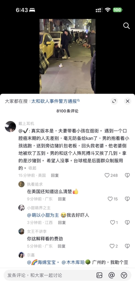 不過,截至發稿,上述在網絡流出的廣州太和鎮斬人影片,中國國內媒體仍未有報道。