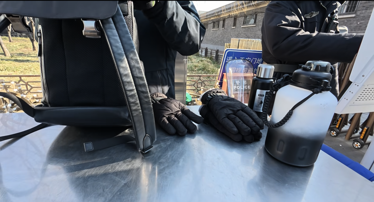 梅大師沿景山前街繼續走,又遇到一個警察設的關卡,被告知需要「安檢」——搜包,查身份證。在翻包的過程中,警察將其中一份合同拿出來,特意看了看。他說,我也沒選擇,我不能說不給你看,沒用嘛。