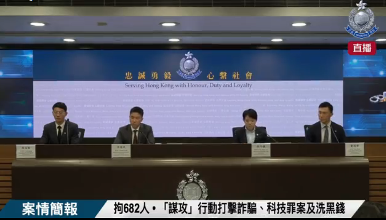 為打擊日益猖獗的詐騙及科技罪案,警方於過去三個星期展開代號「謀攻」的大規模執法行動。行動中,警方共拘捕682人,包括469男213女,年齡介乎14至89歲,涉及580宗騙案及洗黑錢罪行,總涉案金額高達6.2億港元。