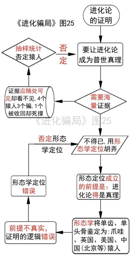 形態學定位成立的前提是「進化論得是普世的真理」,這樣根據進化論,才能用形態來確定骨化石的年代,才能用局部骨頭,大體上復原整個個體的情況——可是,進化論本身就是待證實的假說,所以,形態學定代的前提就是虛幻的,本身就不成立,是邏輯錯誤——用錯誤去證明進化論,錯上加錯。「皮爾當猿人」、「爪哇後期猿人」、「美國豬齒猿人」、「北京猿人」及後來的其它「中國猿人」,都是這個邏輯欺騙的產物。