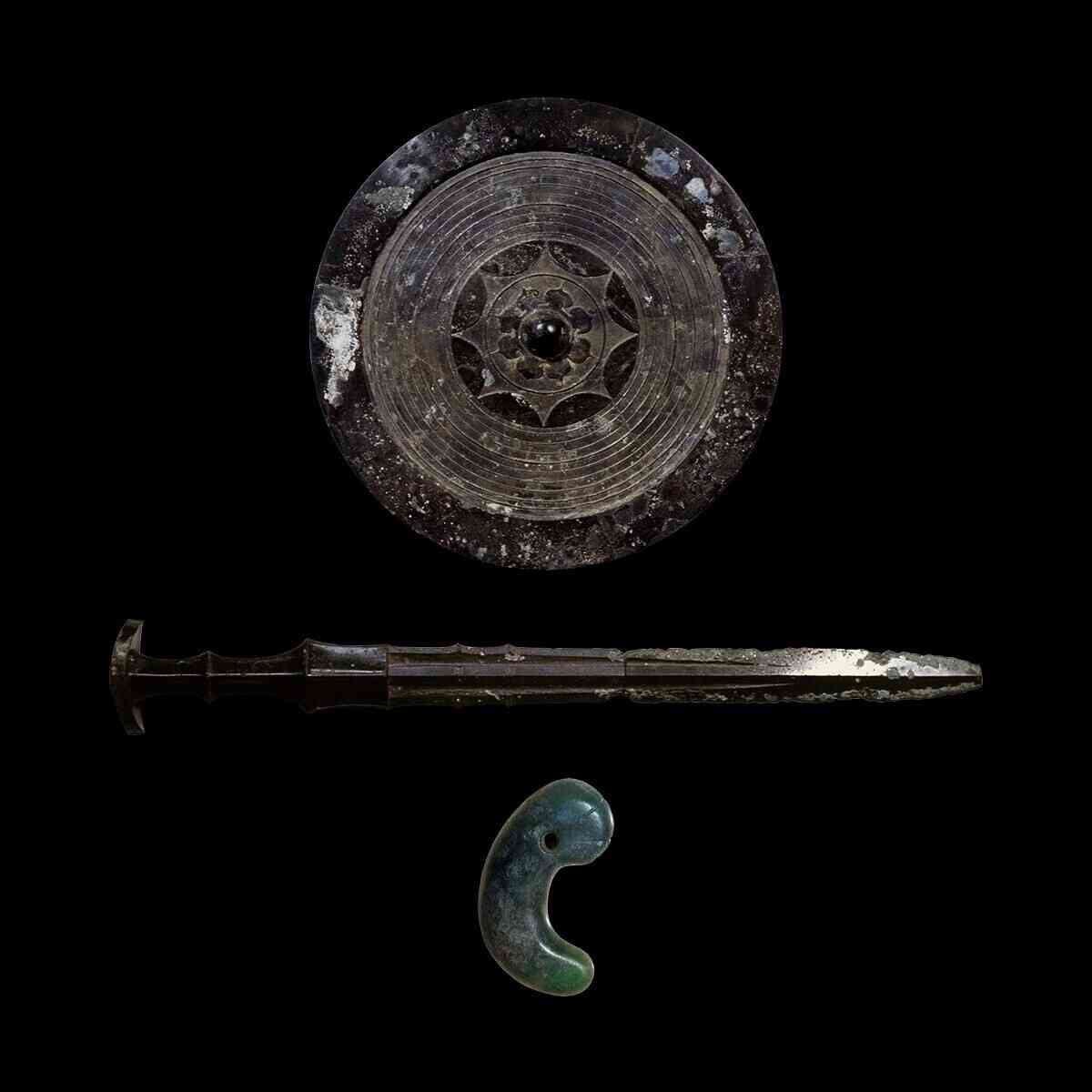 似這般,三件神器本為居於天上的天照大神所有,瓊瓊杵尊因下世開創文明,而將其從天上帶入人間。
