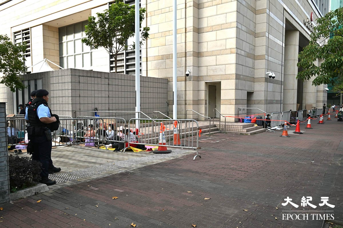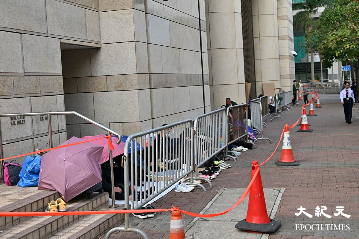 今日(6日)中午,法院外已有大約有數十人排隊,部份人帶備睡袋及紙皮等物品,準備通宵等候至判刑當日。(吳銳略/大紀元)