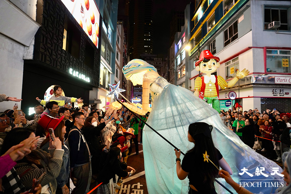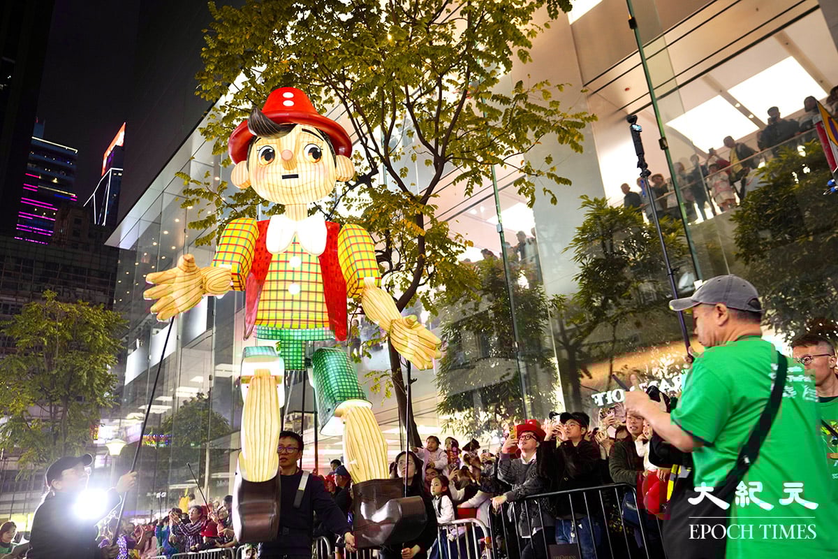 「渣打藝趣嘉年華」今天(7日)晚上在銅鑼灣利園區舉行「夜光巡遊」,以《木偶奇遇記》為主題,由香港藝術家製作21件藝術作品,包括5座巨型燈籠偶及16件嘉年華服飾,舞蹈表演和悅耳的旋律,加上燈光與色彩點亮城市夜色。