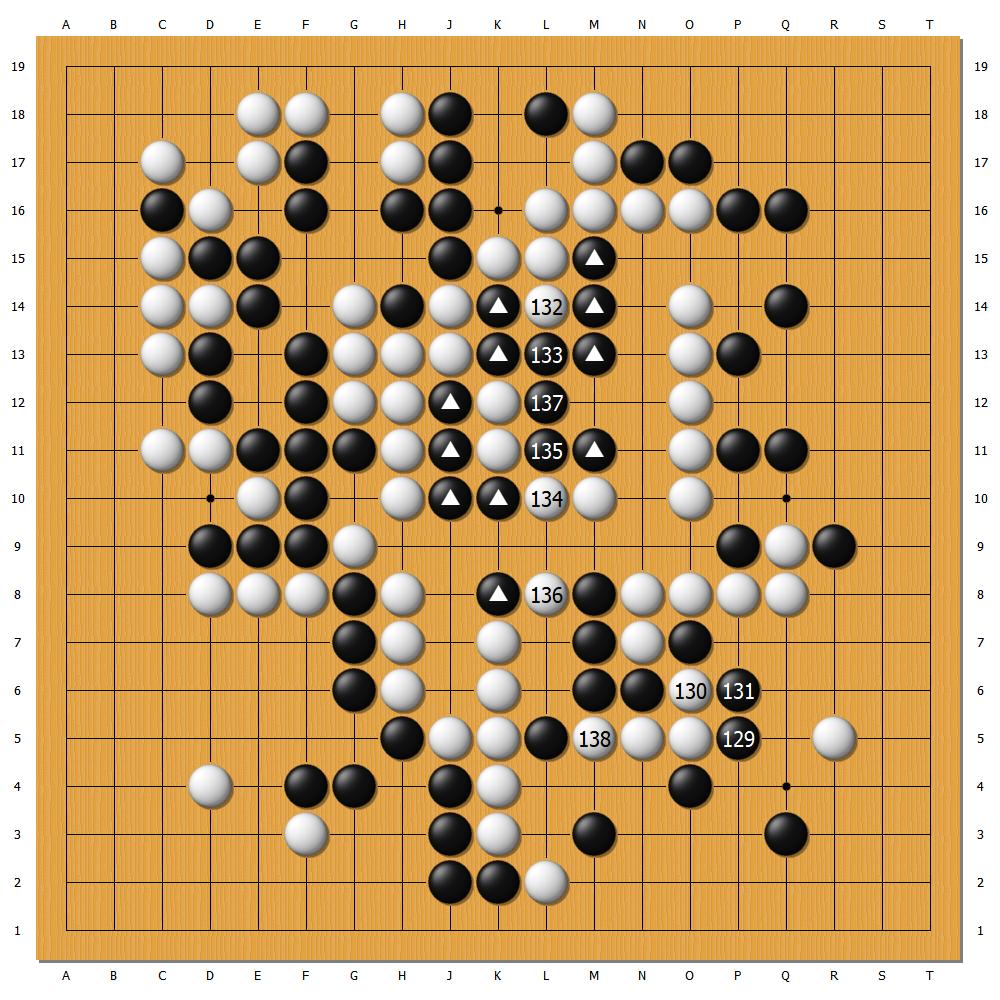 在時間壓力下,黑131手出現嚴重誤算,白兩條大龍實現聯絡,自身大龍聯絡被切斷,還需後手補活,勝率從九成以上瞬間跌至個位數。可謂一著不慎,滿盤皆輸。
