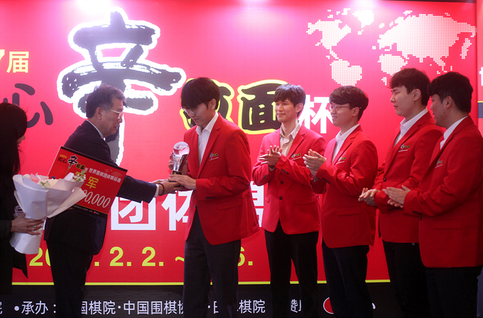 頒獎儀式上,贊助方農心集團李瑢宰董事長向韓國隊頒發團體冠軍獎盃,並向井山裕太和申真諝頒發個人連勝獎,本屆「農心盃」圓滿落幕。