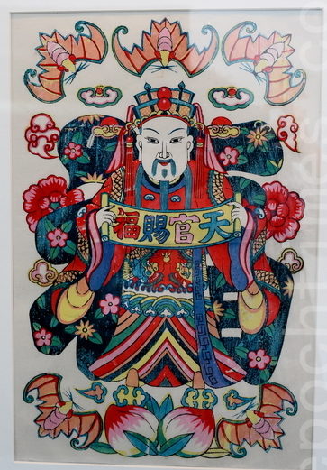 到了南北朝,人們用桃木板刻畫神人像,在元旦掛在家門兩邊,左神荼、右鬱壘,就是「桃符」,也就是我們今人知道的「門神」,貼在門戶上闢邪保衛一家平安。一般傳說「桃符」是春聯的源起,這從王安石的《元日》寫的「千門萬戶曈曈日,總把新桃換舊符」,可以得到一個側證。當時的桃符實際上是畫,就是一種年畫、門神畫。