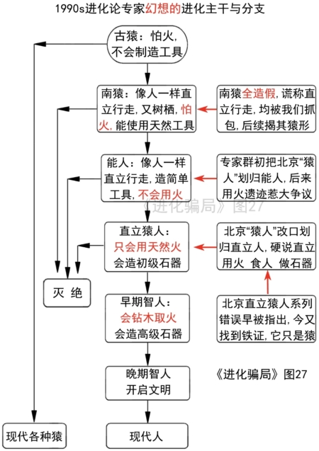 那麼,火跡就是智人(現代人也是智人,和古代智人身體結構差別不大)留下來的,當時已經有人了,還打造甚麼「猿人」?造甚麼進化論的中間環節?