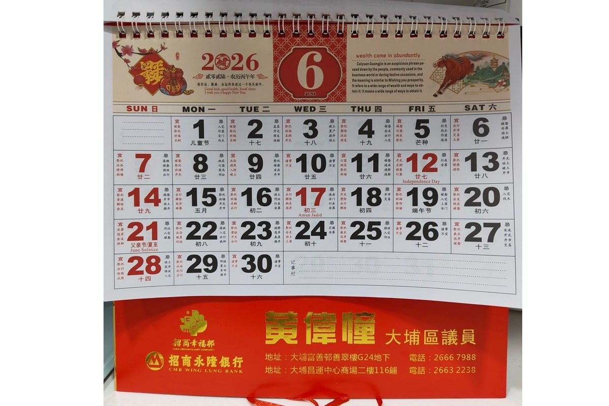 有網民指出,民建聯大埔地區委員會界別區議員黃偉憧今年向街坊派發的月曆,顯示的「紅日」(公眾假期)與香港不同,例如年初三並非假期,反而2月25日(年初九)就是「紅日」,並標記為People Power Anniversary(人民力量革命周年紀念);6月的一頁,12日則為Independence Day(獨立日)。查上述假期安排,同菲律賓相同。之後黃偉憧發聲明致歉,並承認校對疏忽,會深刻檢討。本報正就印刷月曆是否涉及公帑等,向大埔區議會及大埔民政處查詢。