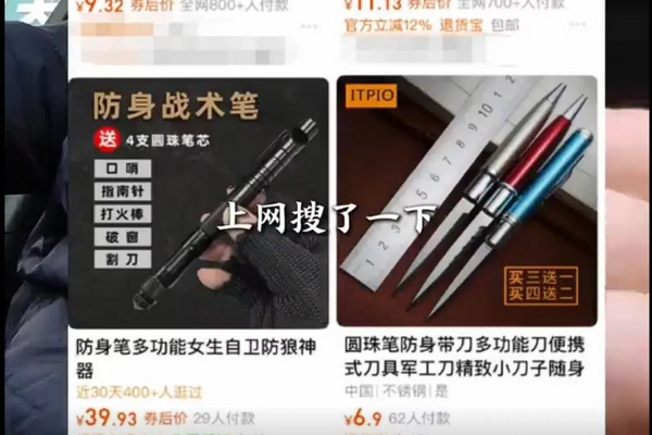 針對這一問題,市場監管部門曾封存、下架並查處了一批問題產品。然而,時隔三年,這類藏刀圓珠筆仍未消失,在部份電商平台上依然可以輕鬆搜到,個別商品銷量甚至達到數百件。