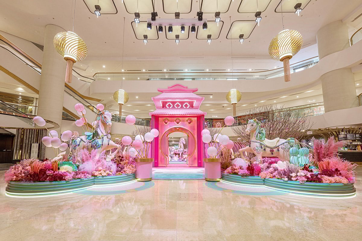 太古廣場及星街小區,由即日至3月3日設有「駿馬星馳錦簇而至」藝術裝置,太古廣場化身為一座洋溢柔和粉紅氣息的雅緻中式庭園,其中一座高達3.5米的巨型駿馬,由本地刺繡團隊YLYstudio以複雜細膩的針線技藝頃力打造而成。