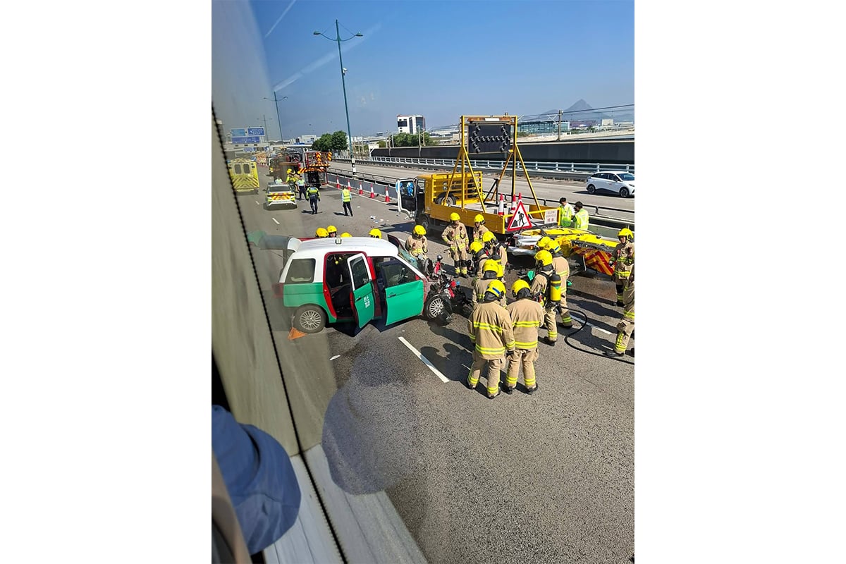 事發於9時49分,警方接報一輛的士沿北大嶼山公路往機場方向行駛期間,疑失控撞向前方停在快線的工程車。