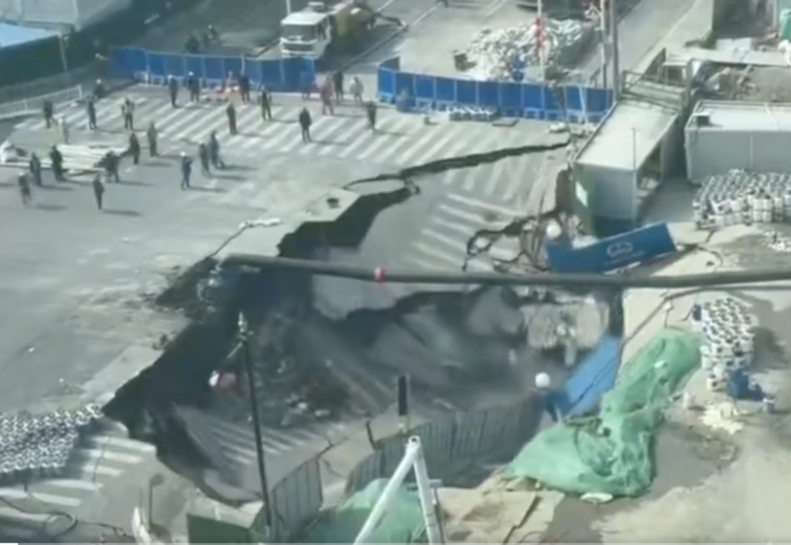 網上傳出的現場片段顯示,上海一處地鐵施工工地發生大面積塌方,道路瞬間如「黑洞」般吞噬路面設施,煙塵瀰漫,場面嚇人。