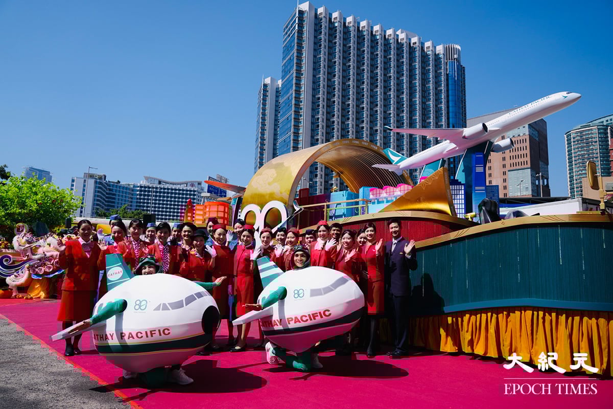 主辦單位旅遊發展局今(13日)率先安排花車亮相。踏入80周年的國泰航空,以「同心飛躍八十年」為主題,展示兩款經典客機,分別是國泰首架「Betsy」DC-3客機,及空中巴士A350客機。80名國泰機組和地勤人員組成的巡遊團隊,將表演舞蹈,部分表演者更穿上不同年代的經典懷舊制服,包括1950年代空軍藍長裙制服;1970至80年代由法國時裝大師Pierre Balmain設計的「東海」制服;由2010年代沿用至今,由香港名時裝設計師劉培基設計的制服等。
