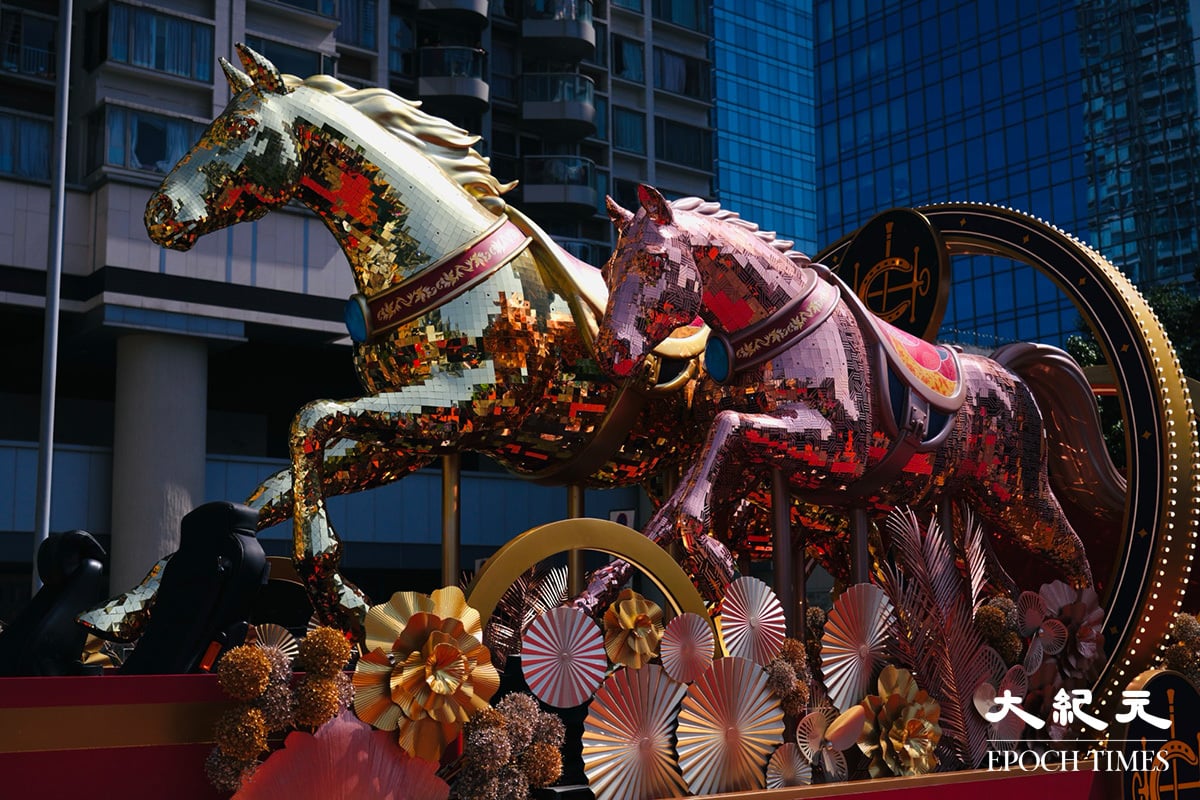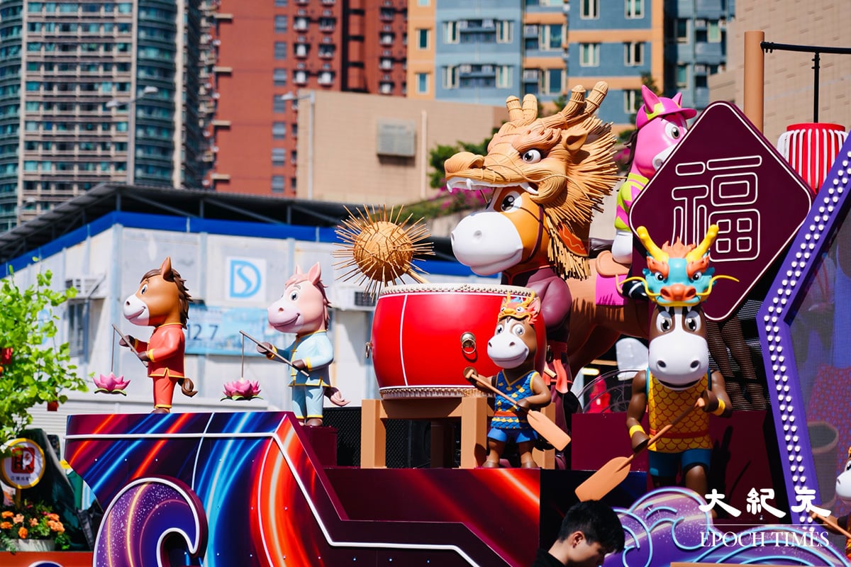 馬年即將到來,香港賽馬會的花車有三匹駿馬,象徵馬年朝氣蓬勃。巡遊當日,馬會馬術隊騎手、亞洲錦標賽獎牌得主林立信及馬會見習騎師黃寶妮會參與匯演,隨行亦有接近50人獻上醒獅及舞龍表演。